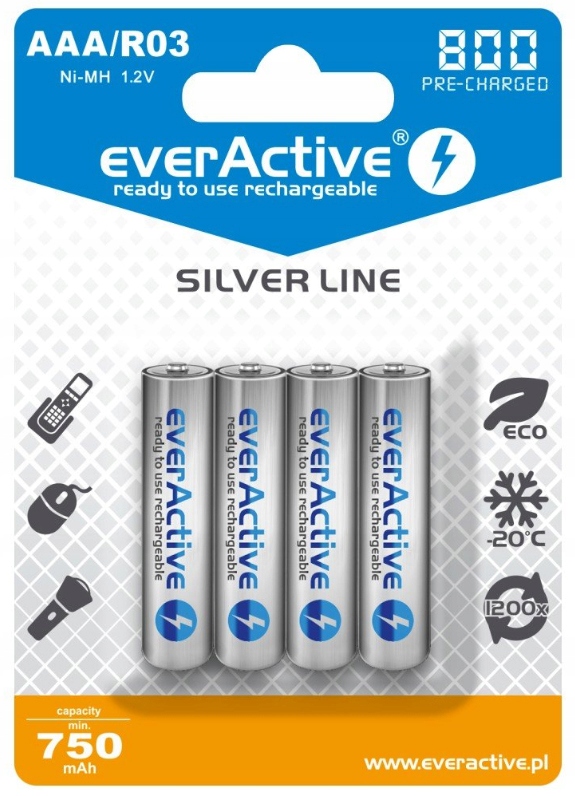- 4x EVERACTIVE АККУМУЛЯТОРЫ 800 мАч AAA R3