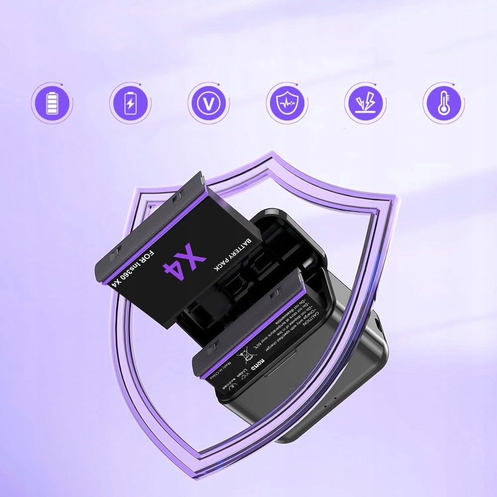 - Батарея Insta 360 x4 имеет 10 слоев, разряжающихся, защита электрического контактного поля, защита клеток и защита от перевальников и т. Д.) И обладает высоким качественным фигрным конструкцией, чтобы гарантировать комплексную защиту для вас и оборудования. Поддерживает быстрой зарядки.