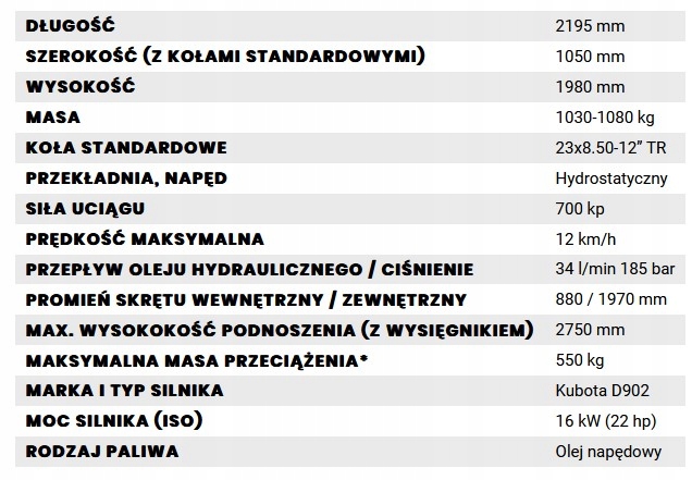 - Максимальный захват подъема = 550 кг li> максимальная скорость = 12 км/ч