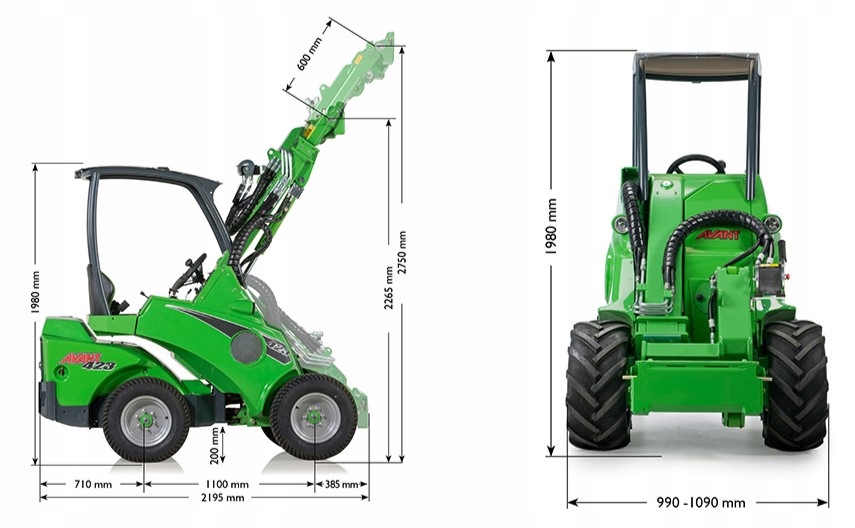 Авант -зарядные устройства из 400 серий являются специалистами в работе в трудных, узких местах, и в то же время самые маленькие модели в дизельном двигателе Небольшая и небольшая масса серии 400, заслуживает внимания более 500 килограммов. Радиус переворачивания зарядного устройства составляет менее двух метров, что означает, что зарядное устройство вращается почти на месте. Общая ширина машины составляет всего 930 мм. , подъем и перемещение и т. Д.