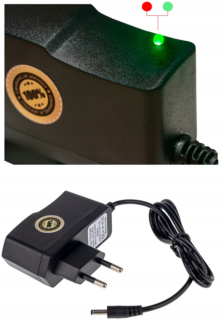 - Зеленый светодиод: зарядное устройство. подключен к сети.