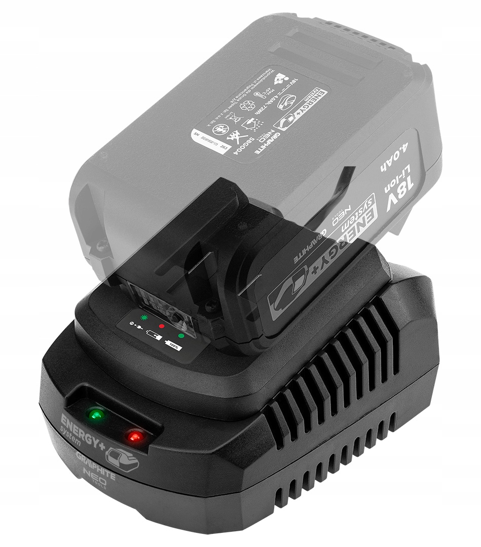 Новое зарядное устройство Energy+ 18V — надежное устройство для зарядки литий-ионных аккумуляторов, совместимых с устройствами NEO и GRAPHITE.