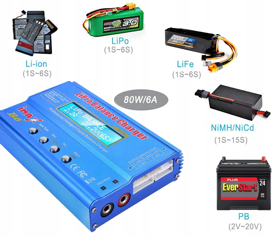Imax B6 — небольшое зарядное устройство для процессора с высокой мощностью до 80Втпредназначена для зарядки Ni-Cd, Ni-Mh, Li-Po, Li-Lo, Li-Fe аккумуляторов, ПБ.