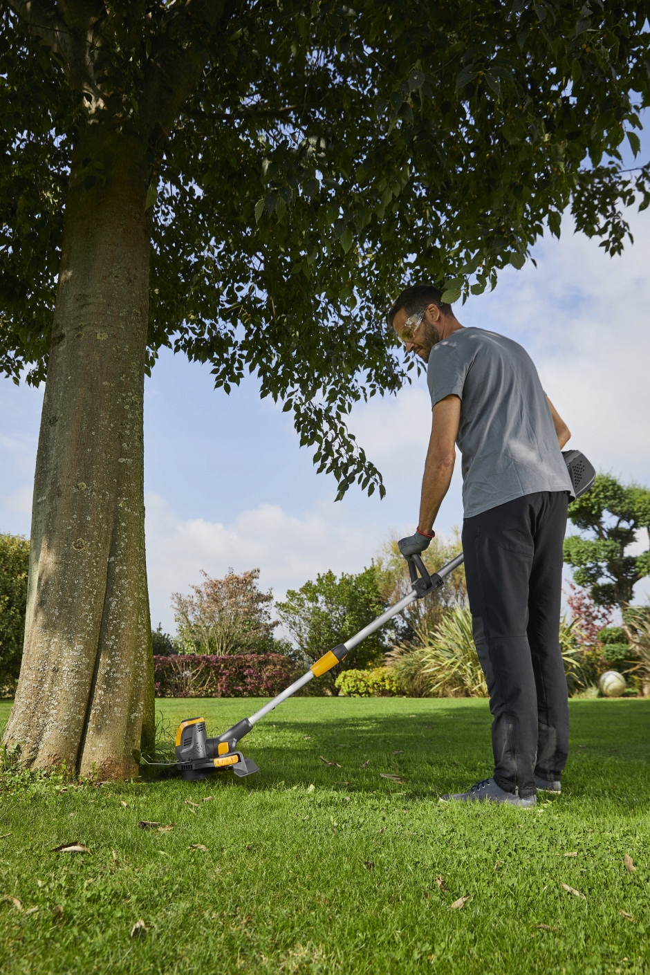 - ✂️ Двухпозиционная режущая головка - позволяет легко переключаться между режимом стрижки травы и точной обрезкой кромок вдоль дорожек, проездов и клумб.