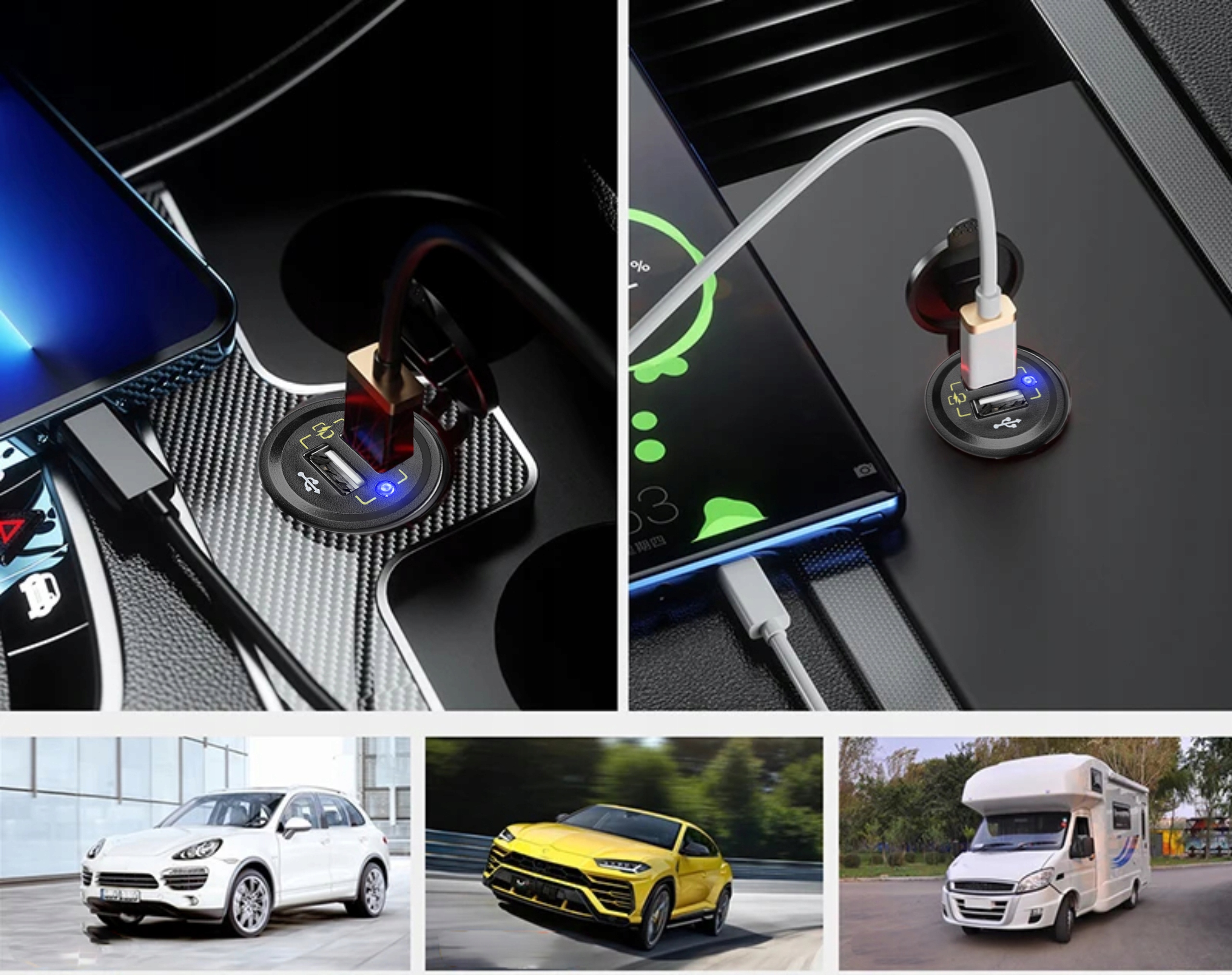 ЗАРЯДНОЕ УСТРОЙСТВО ДЛЯ АВТОМОБИЛЯ, МОТОЦИКЛА, ЛОДКИ, КАМЕРЫ 2x USB 3.4A РОЗЕТКА 12В 24В