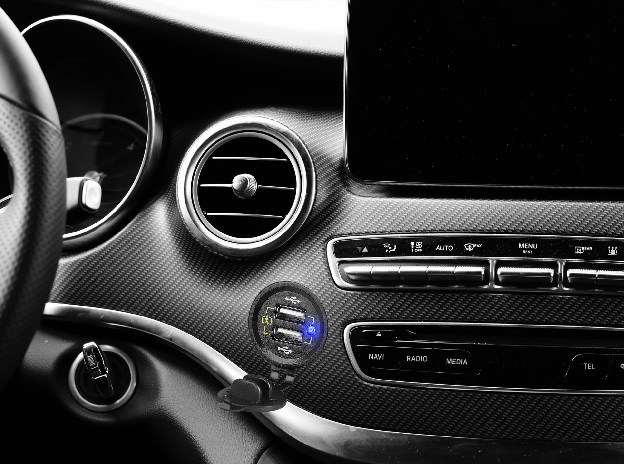 Зарядное устройство предлагает широкий спектр применений, например. в автомобилях, лодках, яхтах и мотоциклах. Его можно установить вместо гнезда прикуривателя или как дополнительную розетку.