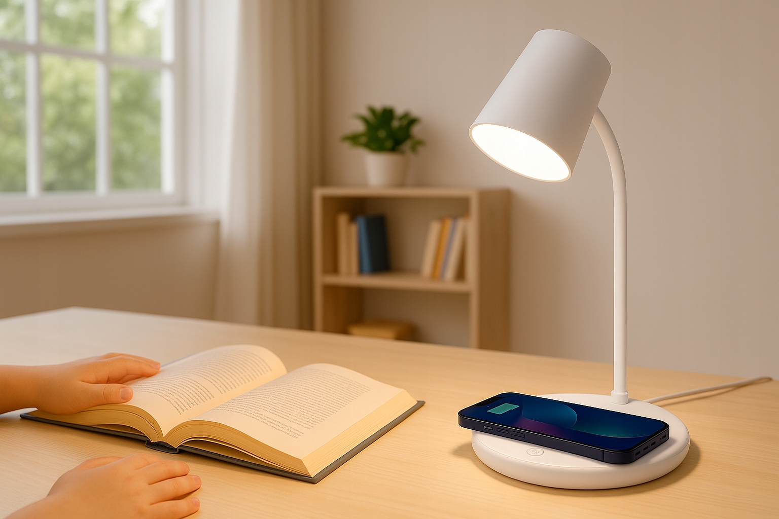 Поставьте телефон на подставку лампы, и зарядка начнется автоматически.