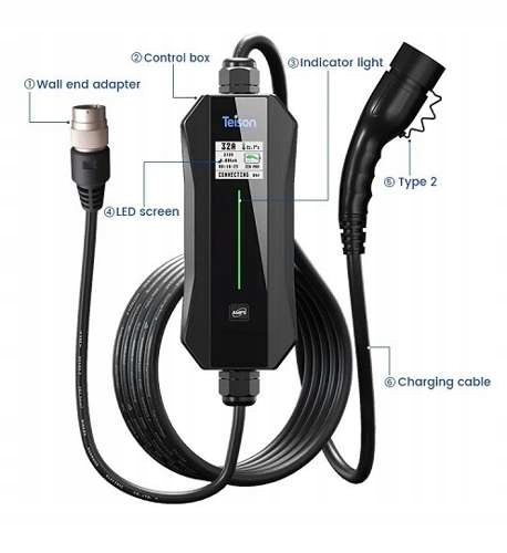 - Трёхфазное мобильное зарядное устройство обеспечиваеточень высокую мощность до 22 кВт.