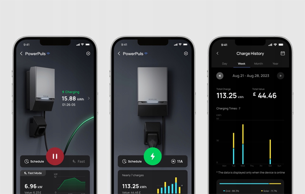 Преобразуйте солнечную энергию в дополнительные километры. Решение EcoFlow PowerPulse обеспечивает быструю зарядку электромобилей с помощью фотоэлектрических панелей. Вы также можете подключить их к системе PowerOcean, чтобы хранить излишки электроэнергии для последующего использования. Продукт позволяет заряжать автомобили мощностью до 11 кВт, обеспечивая при этом полную безопасность использования. Он также имеет прочную и долговечную конструкцию. Также установите специальное приложение EcoFlow и получите полный контроль над своей системой.