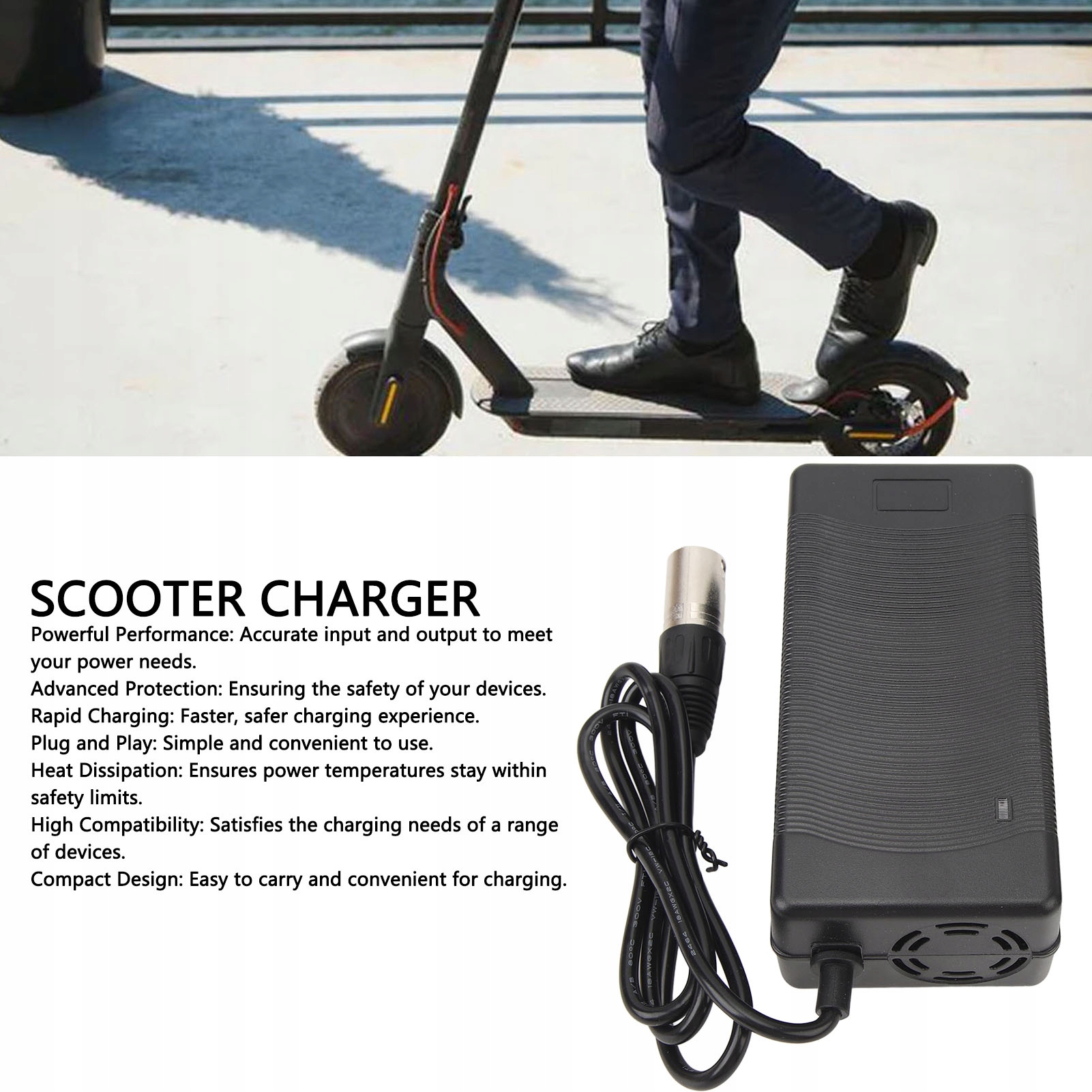 1. Надежная совместимость: зарядное устройство для электрического велосипеда рассчитано на входное напряжение переменного тока 100–240 В и выходное напряжение 42 В, 4 А, со стандартным разъемом XLR. Обеспечивает отличную совместимость и универсальность для различных моделей электрических велосипедов. 2. Несколько защит: зарядное устройство оснащено интеллектуальной защитой от перенапряжения, защитой от перегрузки и защитой от короткого замыкания, обеспечивая безопасное и надежное питание аккумулятора вашего электрического велосипеда. 3. Быстрая зарядка: при использовании адаптера зарядного устройства обеспечивается интеллектуальная высокоскоростная зарядка, что делает процесс зарядки более быстрым и безопасным. Зарядное устройство поддерживает стабильное напряжение, обеспечивая безопасную и надежную зарядку различных устройств. 4. Подключи и работай: зарядное устройство спроектировано так, чтобы быть простым, компактным и простым в установке, что позволяет удобно использовать подключи и работай. Он удобен для пользователя и подходит для всех уровней квалификации. 5. Превосходное рассеивание тепла: зарядное устройство имеет отличные возможности рассеивания тепла, гарантируя, что блок питания остается при безопасной температуре. Это гарантирует надежность зарядного устройства.