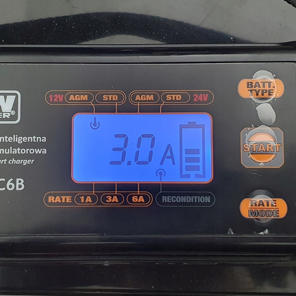 - Выбираемый зарядный ток: 1А/3А/6А (12В), 1А/3А (24В);