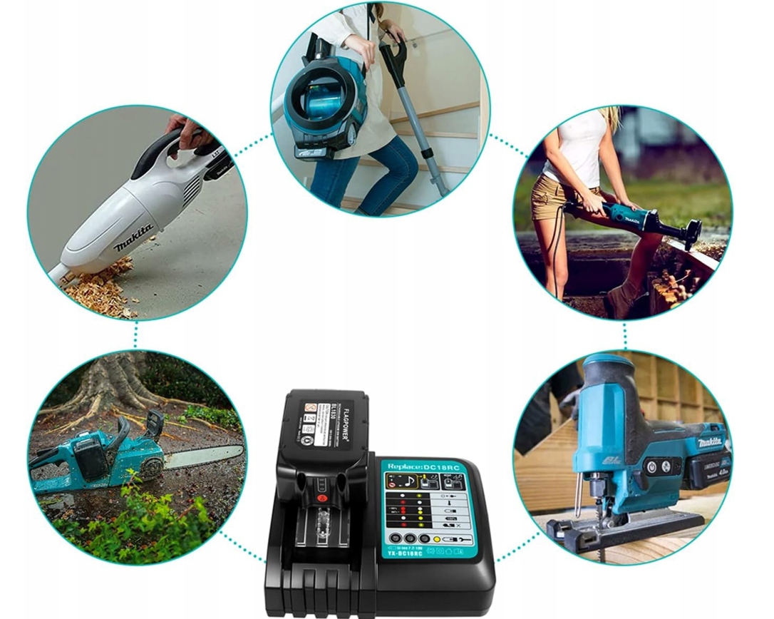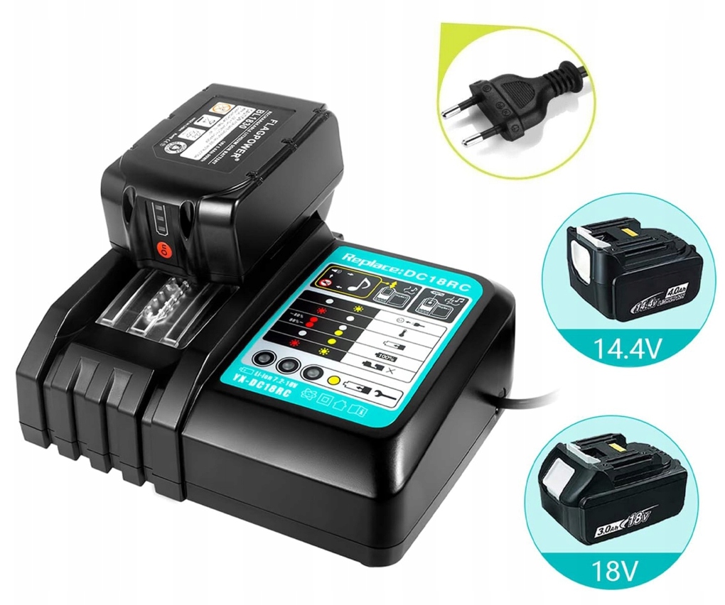 - 🍭 Зарядное устройство DC18RC заменяет Makita 14,4В 18В BL1815 BL1830 BL1840 BL1850 BL1860 BL1415 BL1430 BL1440 BL1450 BL1460 и т.д.