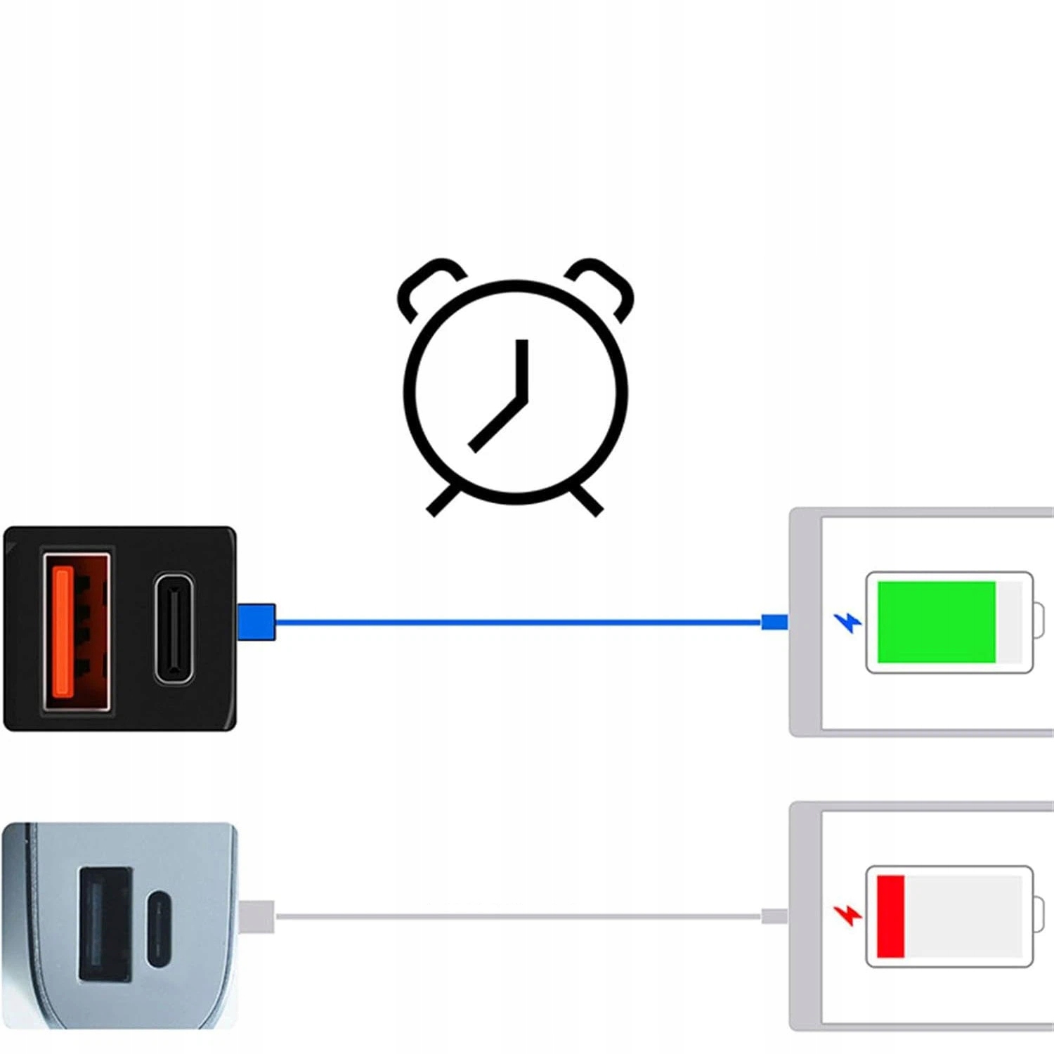 Современное USB-зарядное устройство для мотоцикла, оснащенное двумя портами — USB-C (PD 30 Вт) и USB-A (Quick Charge 3.0 18 Вт). Он позволяет заряжать два устройства одновременно и заряжать телефон до 50 % всего за 30 минут!