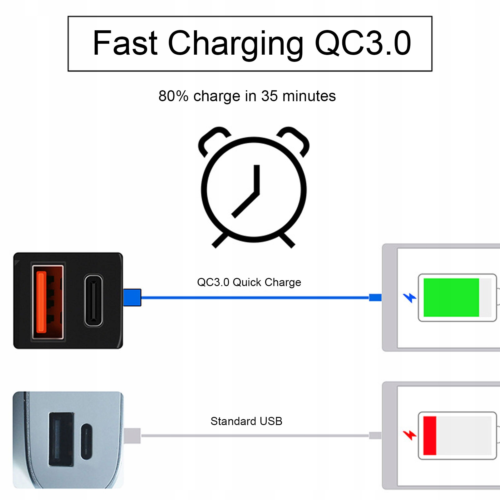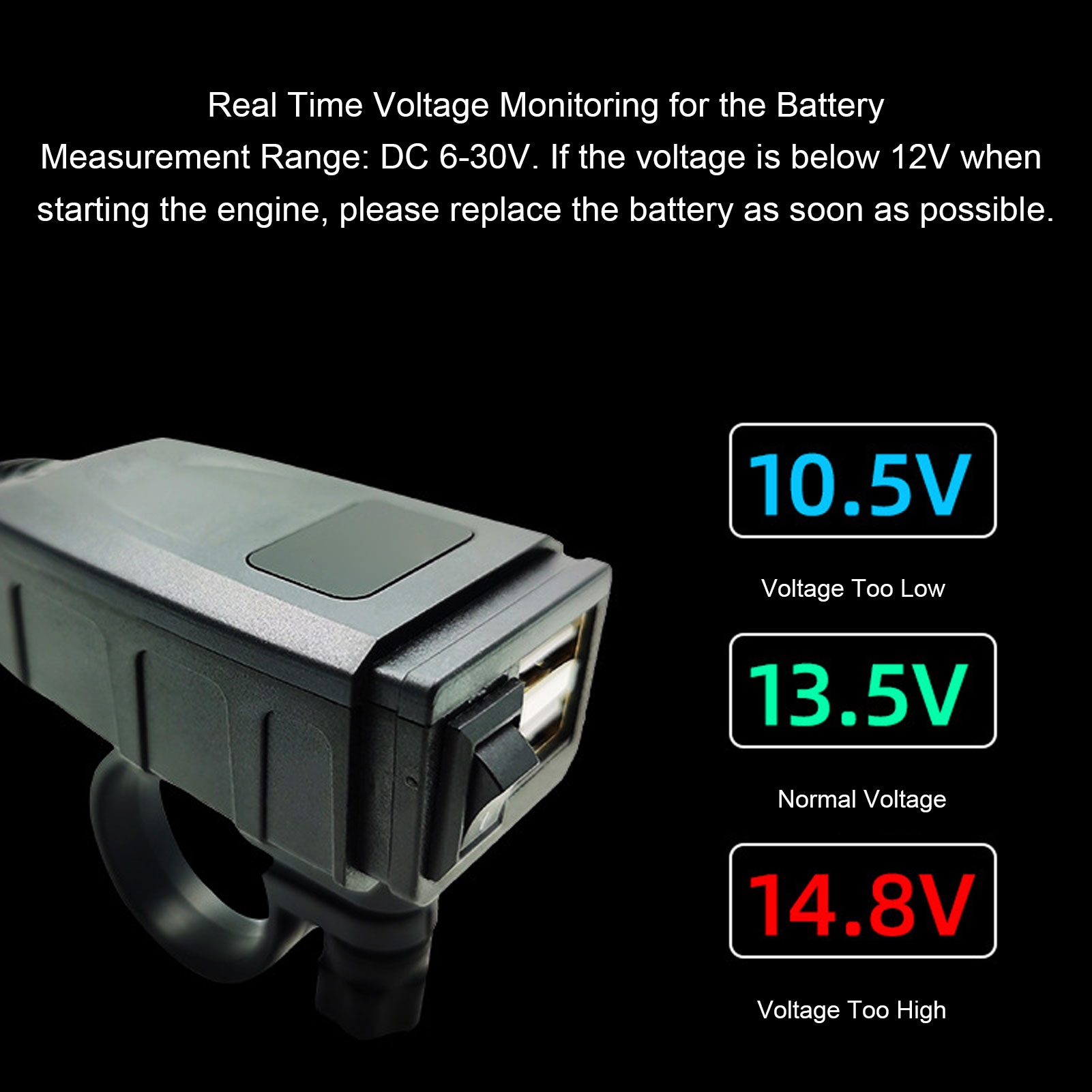 1. Двухпортовая быстрая зарядка: Модернизированное зарядное устройство для мотоциклетного телефона имеет мощный двойной порт мощностью 30 Вт и порт USB A мощностью 18 Вт (быстрая зарядка 3.0). Заряжайте свои устройства USB Type-C на 50 % всего за 30 минут, обеспечивая одновременное питание двух устройств для повышения эффективности в дороге.