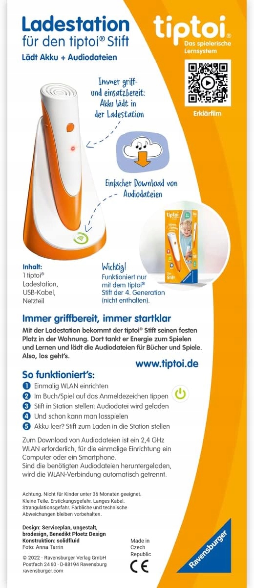 - В комплекте: 1 зарядная станция типтои, 1 разъем USB. кабель, 1 сетевой адаптер USB, руководство пользователя (может быть недоступно на польском языке)