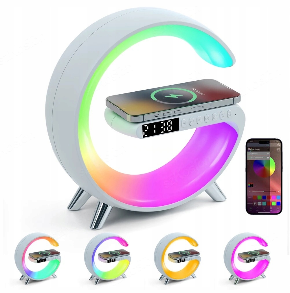 - Продукт: Интеллектуальная светодиодная RGB-лампа с индуктивным зарядным устройством, часами, будильником и динамиком