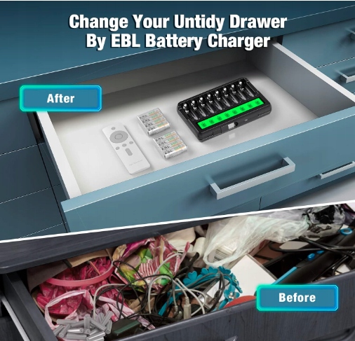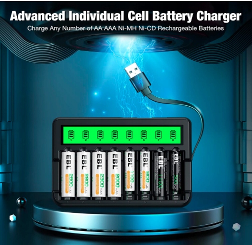 - Независимая розетка для быстрой зарядки: зарядное устройство EBL FY-819 может свободно заряжать или разряжать 1/2/3../7/8 NiMH NiCD батареи AAA, большая выходная мощность до 500 мА позволяет заряжать батарею быстрее, экономя время .