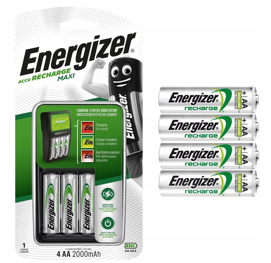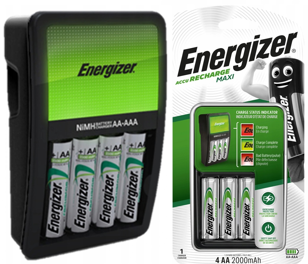- Зарядное устройство Energizer MAXI AA AAA + 4 батарейки R6 AA 2000 мАч