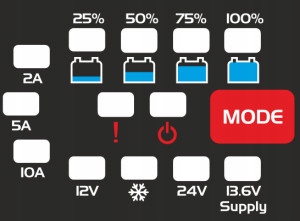 - мониторинг напряжения после завершения зарядки - автоматическое возобновление зарядки в случае падения напряжения аккумулятора, также после отключения электроэнергии от сети переменного тока