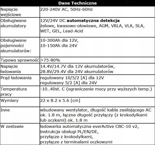 EverActive CBC10 – универсальное зарядное устройство/ так называемые «интеллектуальный выпрямитель» для всех типов кислотных аккумуляторов (автомобильных и т.п.) 12В и 24В, гелевых/AGM.НОВАЯ ЦИФРОВАЯ ТЕХНОЛОГИЯ означает малый размер, большую надежность, большую эффективность, большую эффективность, меньшее потребление электроэнергии. Максимальный (регулируемый) зарядный ток для аккумуляторов 12В составляет 10А - достаточно 10-20 минут. зарядкадля запуска автомобиля с разряженным аккумулятором!Прямо от специалиста в сфере электроснабжения: