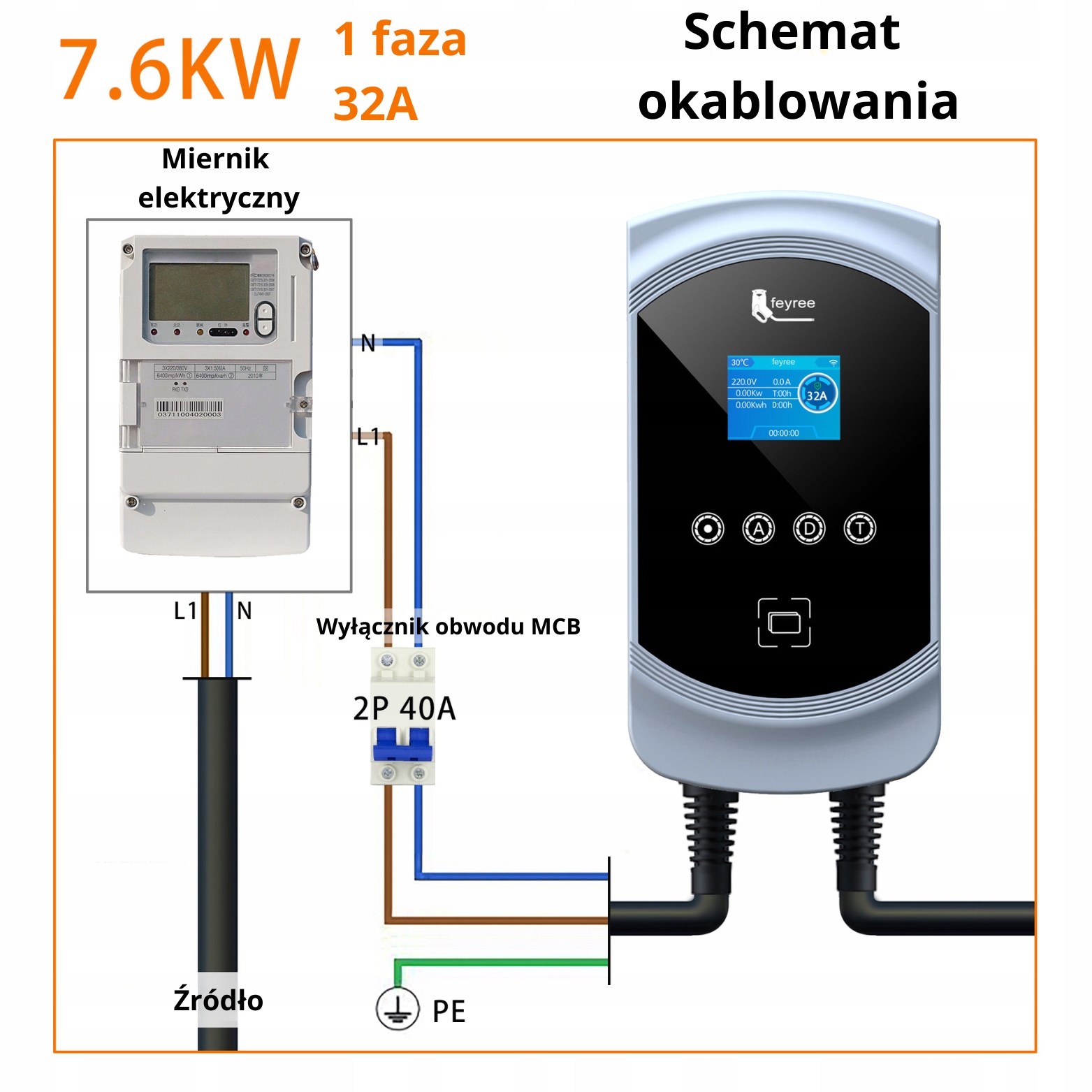 Зарядний пристрій FEYREE Wallbox потужністю 7 кВт тип 2 - 32 A 1 фаза Wi-Fi & RFID - Tesla +