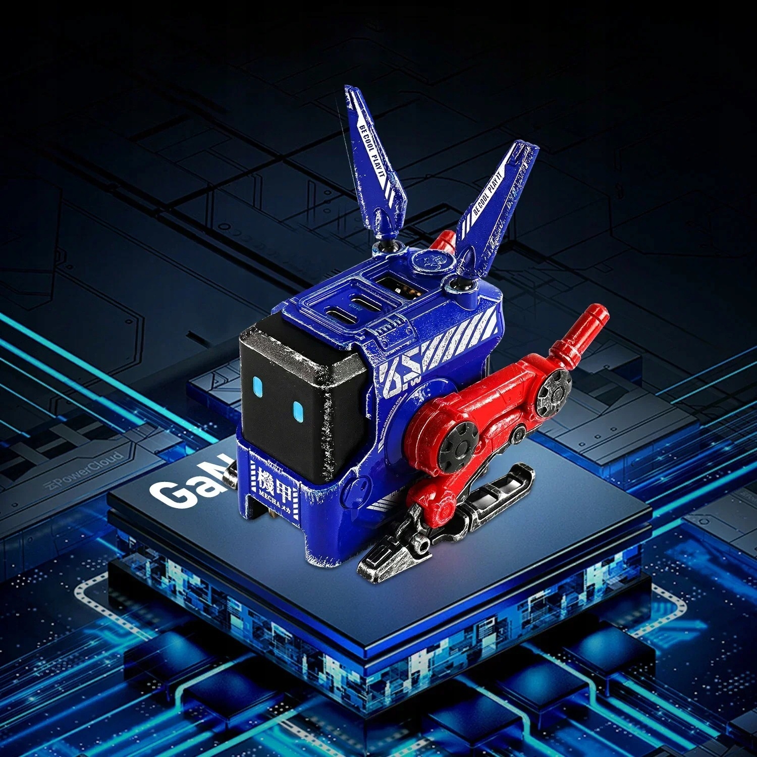 Заряжайте стильно с помощью устройства быстрой зарядки GaN GravaStar Alpha65 мощностью 65 Вт в цвете War-Damaged Blaze Blue. Это компактное складное зарядное устройство, оснащенное 2 портами USB-C и 1 портом USB-A, поддерживает быструю и эффективную зарядку всех ваших устройств. Благодаря технологии GaN, широкому выбору разъемов и футуристическому дизайну, созданному вручную, он выводит зарядку на новый уровень.
