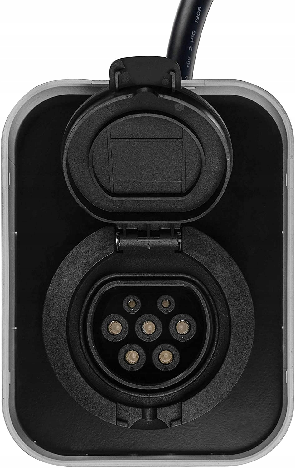 Розетка для зарядного устройства GC EV PowerBox — это самая популярная вилка типа 2 в Европе (IEC 62196-2). Будучи стандартизированным разъемом, он обеспечивает широкую совместимость с кабелями, которые можно приобрести в ЕС, например. Тип 2 – Тип 2 и Тип 2 – Тип 1