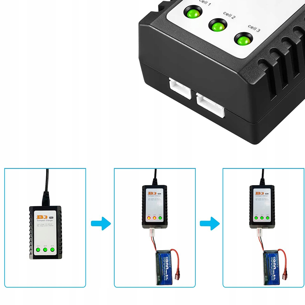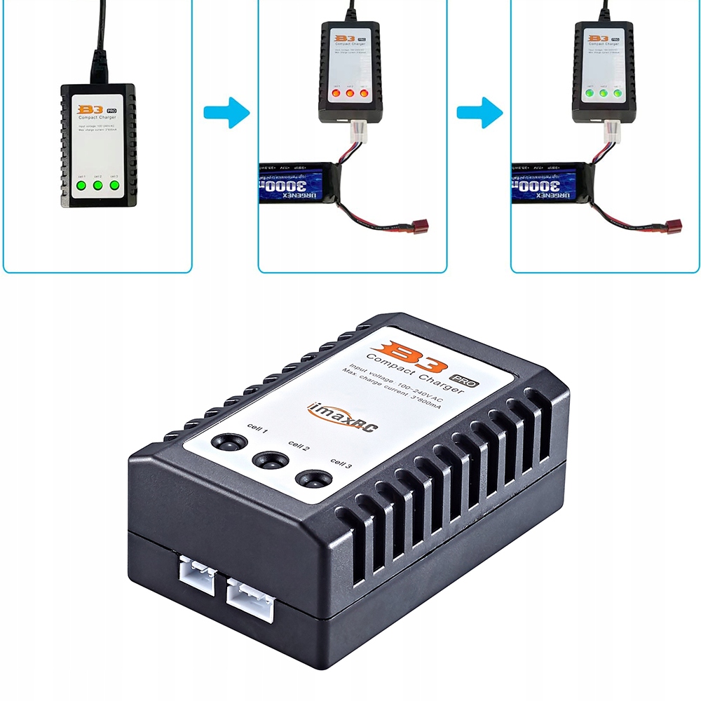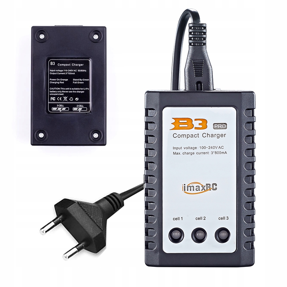 Необслуживаемое зарядное устройство для процессора Imax B3 PRO с балансиром, питание от сети напряжением 230 В. Совместим с литий-полимерными батареями 2S и 3S (7,4 В и 11,1 В). Процесс зарядки происходит через разъем балансира.