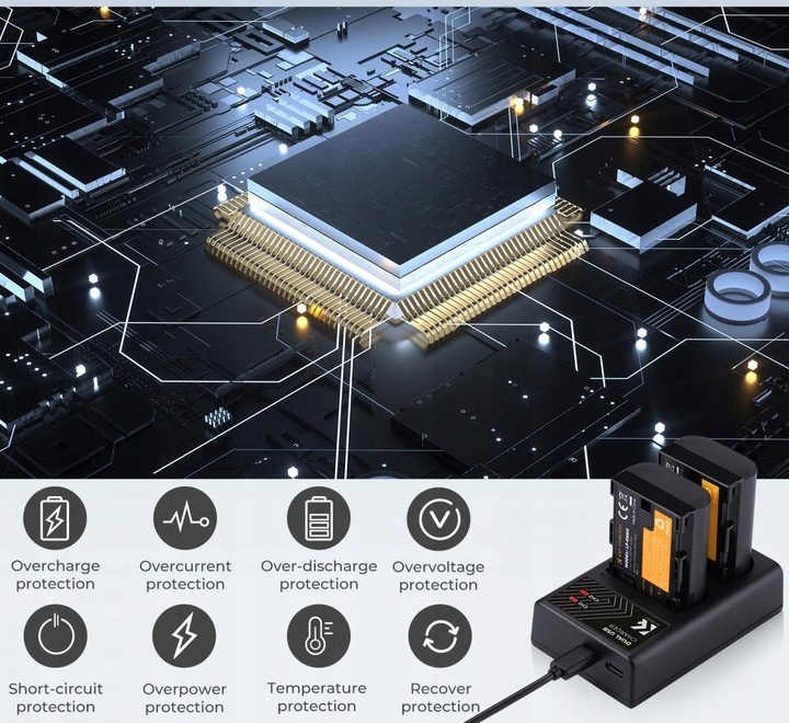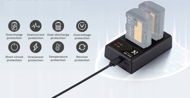 Возможность заряжать два аккумулятора одновременно означает еще большой комфорт работы и возможность лучшей защиты в случае неожиданного отключения питания в камере.