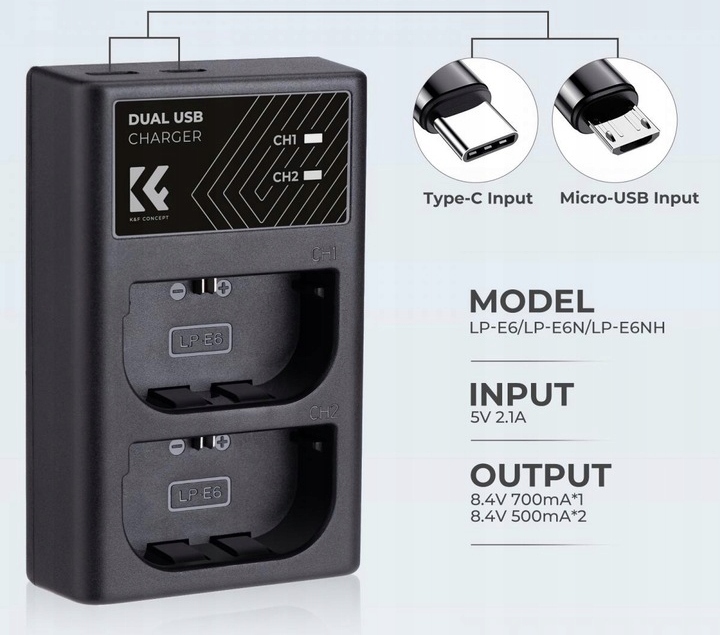 Зарядное устройство K&F LP-E6NH Canon 5D IV 6D II 7D R5 R6