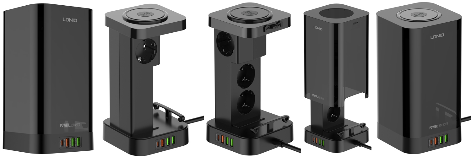 Последняя модель зарядного устройства, соединяющего USB -зарядное устройство Extender 230 В и беспроводную индукционную зарядку.
