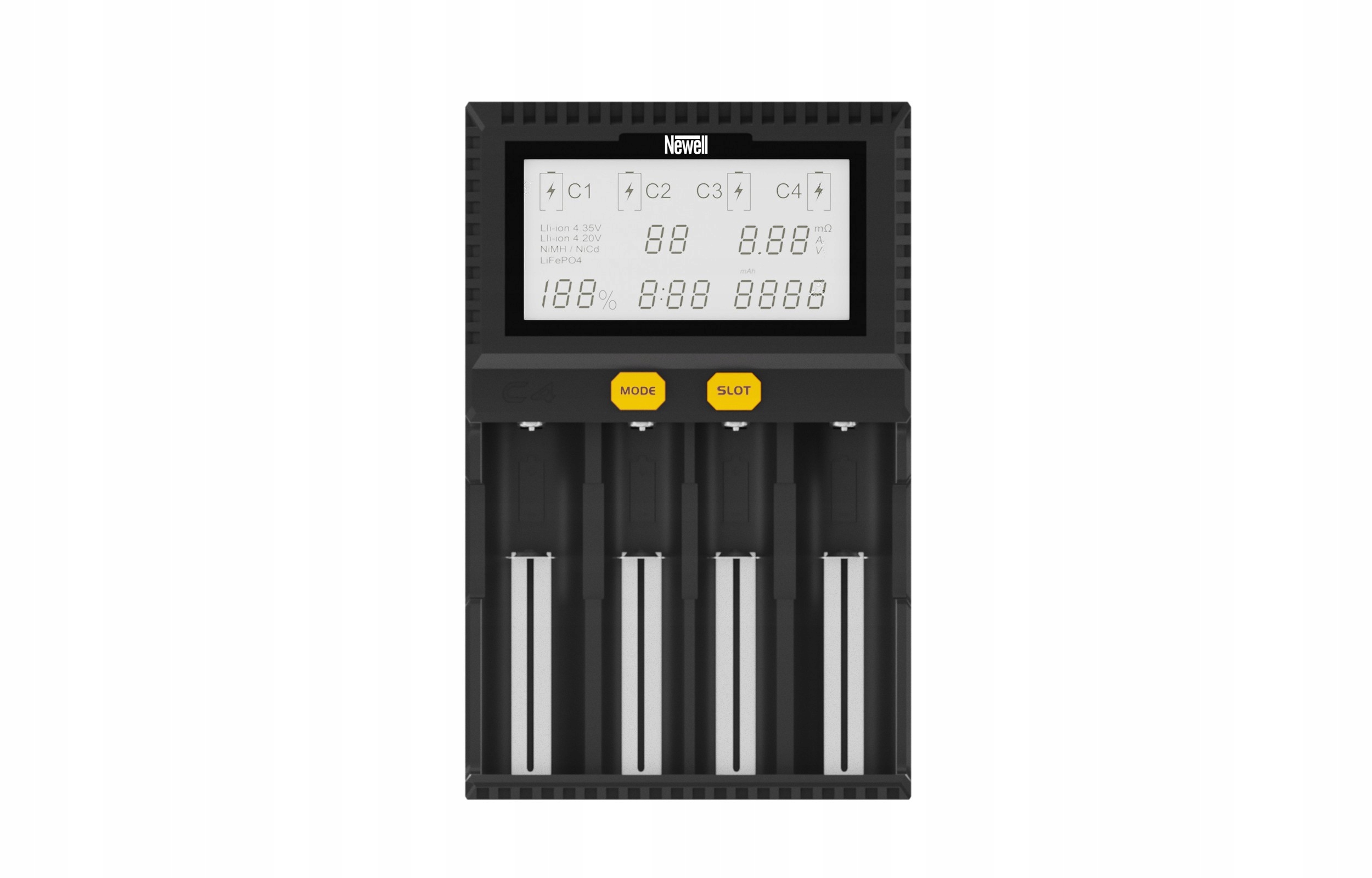 Newell C4 Supra — универсальное зарядное устройство, совместимое с большинством цилиндрических аккумуляторов, имеющихся в продаже. На ЖК-дисплее отображается напряжение, ток, время зарядки, внутреннее сопротивление и процент заряда элемента – все это позволяет легко определять параметры и состояние процесса. Специально разработанный корпус позволяет одновременно заряжать даже самые большие аккумуляторы (типа С или 22650) по всем четырем каналам одновременно.