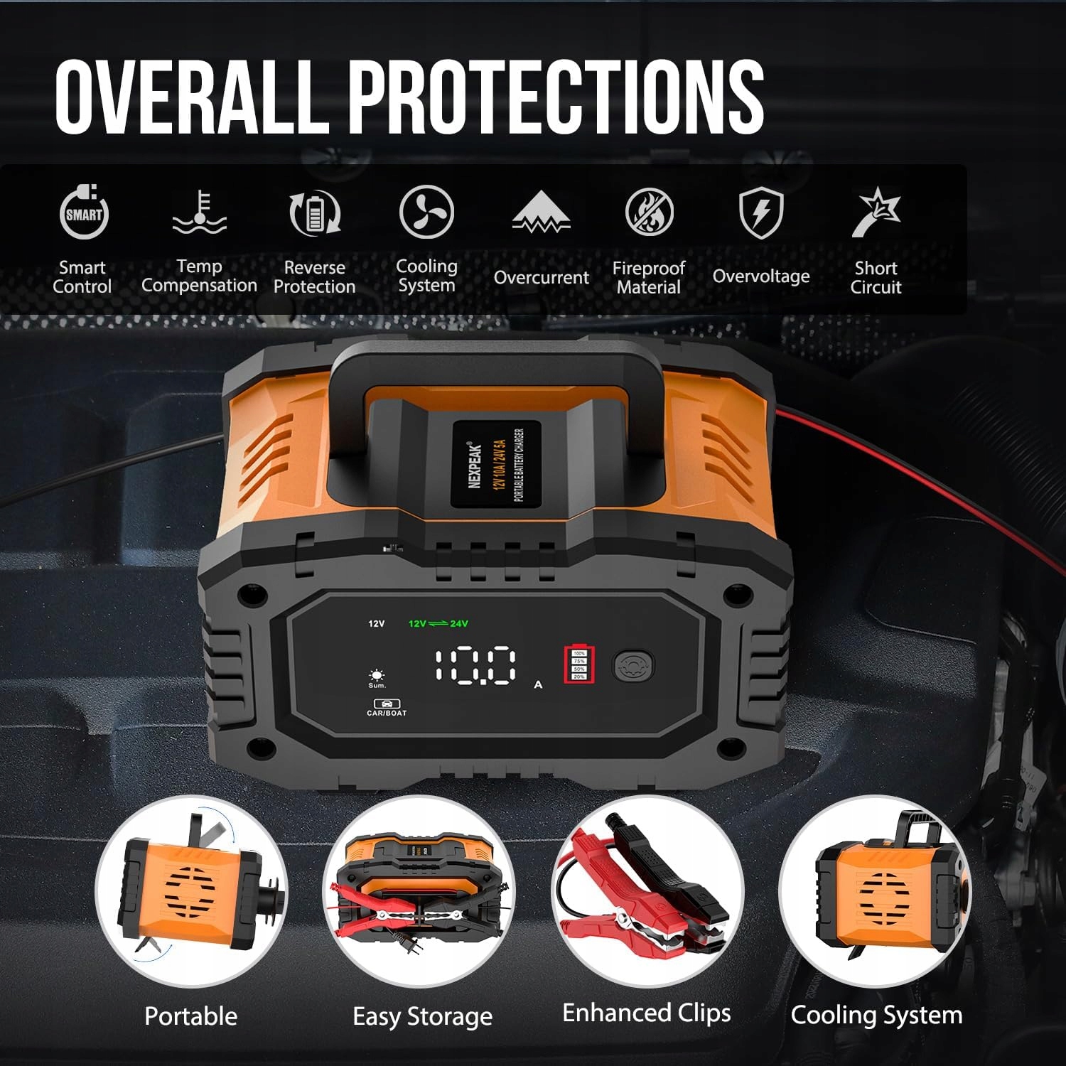 【ОБЩАЯ ЗАЩИТА ЗАРЯДКИ】Интеллектуальное управление, температурная компенсация в жарком климате и недозаряд в холодном климате, защита от обратного короткого замыкания, система охлаждения, перегрузка по току, огнестойкий материал, перезарядка, короткое замыкание. Зарядное устройство для аккумулятора с множеством защит обеспечивает безопасную зарядку в любое время и в любом месте. Не волнуйся! 【ВЫСОКОЭФФЕКТИВНЫЙ ИМПУЛЬСНЫЙ ВОССТАНОВЛЕНИЕ】Автомобильное зарядное устройство обнаруживает сульфатацию и кислотное расслоение аккумулятора, используя новейшую функцию импульсного восстановления для восстановления утраченных характеристик аккумулятора, обеспечивая более сильный запуск двигателя и более длительный срок службы аккумулятора. Попробуйте починить аккумуляторы на несколько часов, а затем полностью зарядить их, и вы увидите разницу! ПРИМЕЧАНИЕ. Полностью разряженные аккумуляторы невозможно активировать или зарядить.