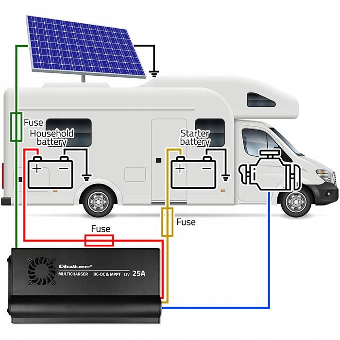 ✅ Автоматическое зарядное устройство Qoltec DC-DC 12 В с регулятором MPPT | 25А | LiFePO4 AGM GEL STD