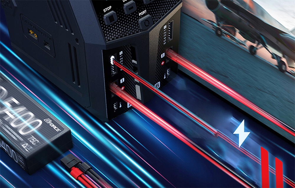 - Зарядные токи: LiPo / LiFe / LiIon / LiHV / NiMH / NiCd / Pb: 0,1–20,0 А;