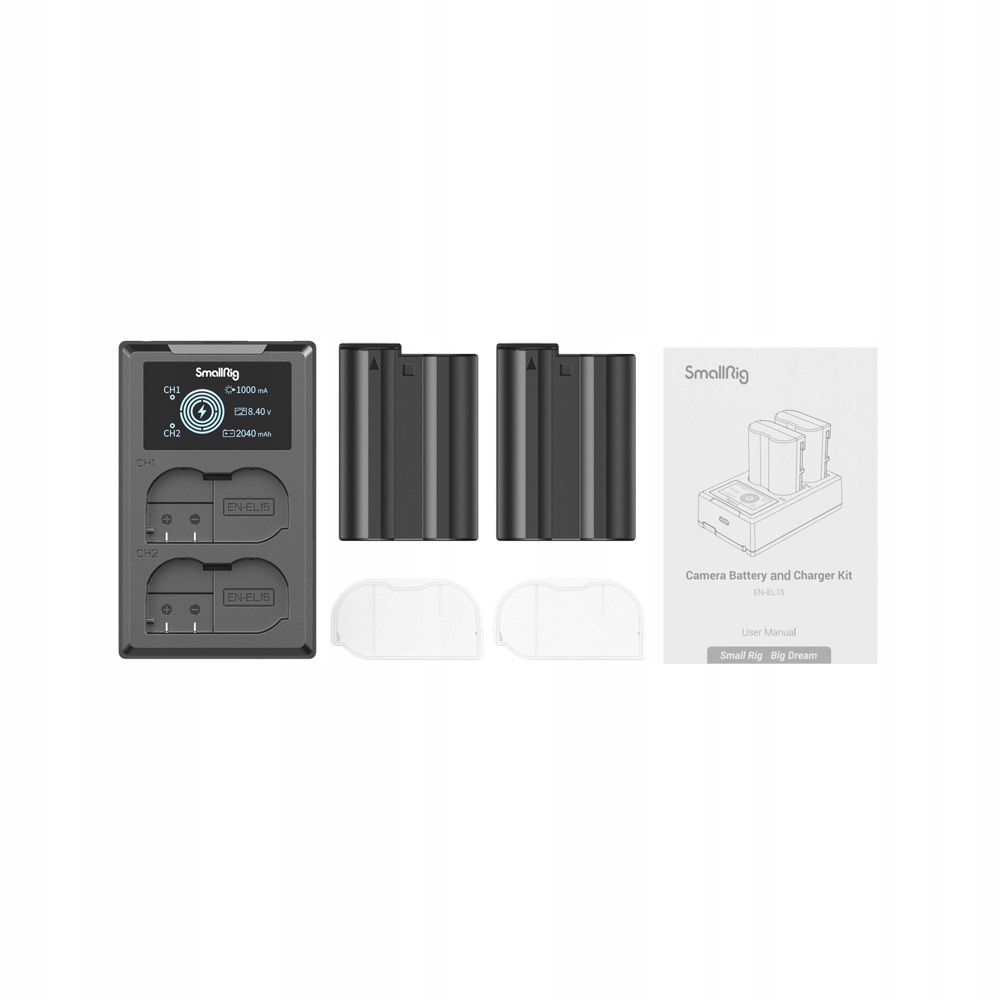 Набор SmallRig 3820 EN-EL15, состоящий из 2 аккумуляторов и зарядного устройства.