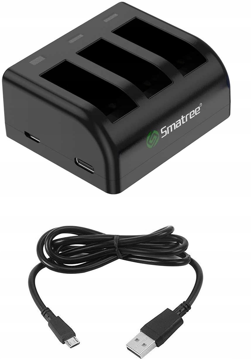 Зарядное устройство, позволяющее заряжать три аккумулятора одновременно через USB-кабель (входит в комплект).