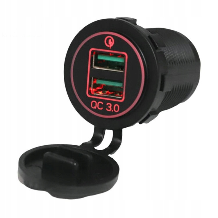 Универсальное быстрое зарядное устройство для автомобиля или мотоцикла с технологией QuickCharge 3.0, устанавливаемое вместо гнезда прикуривателя.