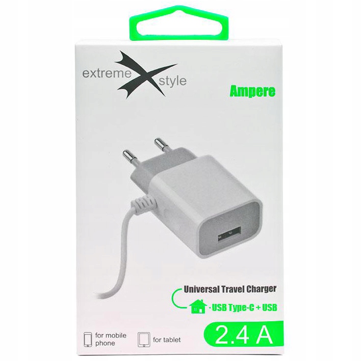 Универсальное сетевое зарядное устройство от eXtreme Ampere. Зарядное устройство имеет универсальную розетку USB и встроенный кабель USB Type-C с общим током 2,4 А. Зарядное устройство совместимо с любым устройством, заряжаемым через соответствующий USB-кабель или кабель USB Type-C.