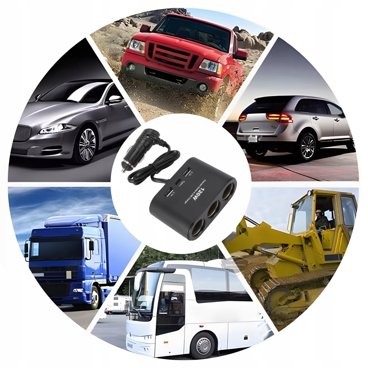 РАЗДЕЛИТЕЛЬ ПРИЖИГАЛА x3 ЗАРЯДНОЕ УСТРОЙСТВО USB-C USB QC 120 Вт 12 В/24 В