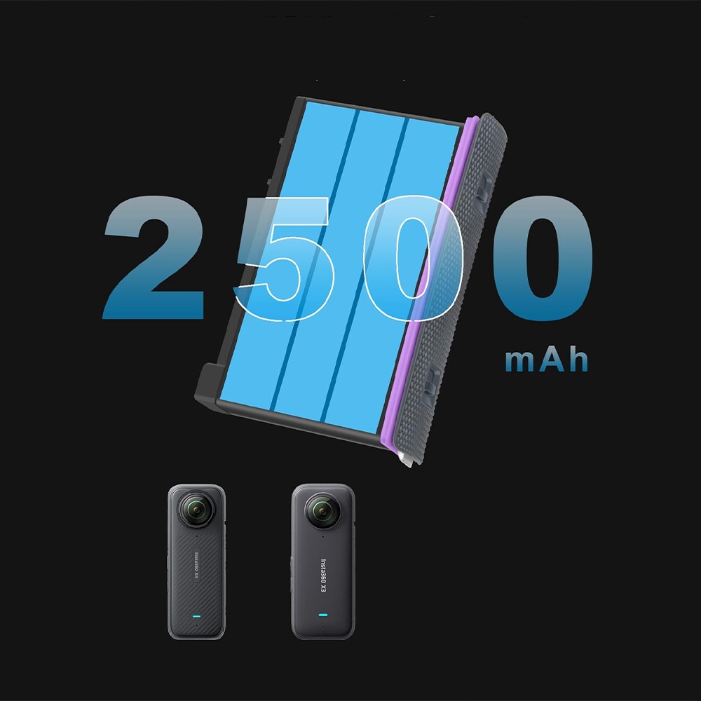 Литий-ионный полимерный аккумулятор емкостью 2500 мАч, совместимый с Insta 360x4, ограниченное напряжение зарядки: 4,40 В; номинальная мощность: 9,63 Втч; Номинальное напряжение: 3,85 В