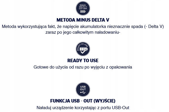 - Обширные функции безопасности: метод минус-дельта-V, таймер сна, защита от короткого замыкания, щелочная батарея и обнаружение сломанного элемента.