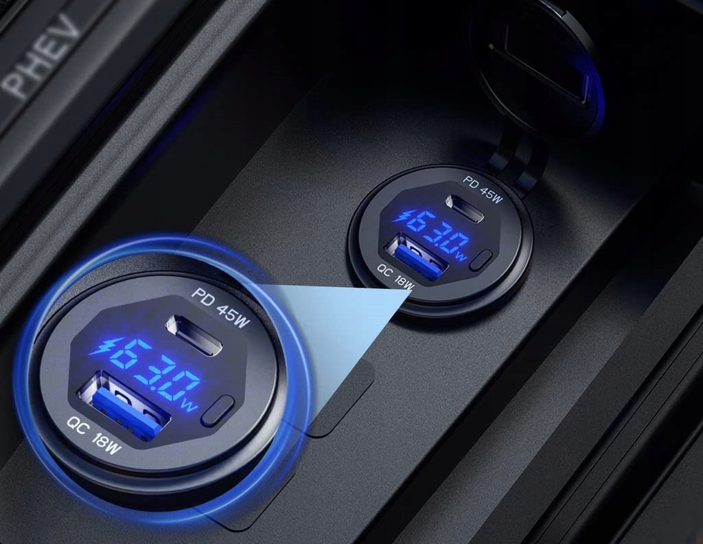 АВТОМОБИЛЬНОЕ ЗАРЯДНОЕ УСТРОЙСТВО USB QC3.0 18 Вт + PD USB C 45 Вт