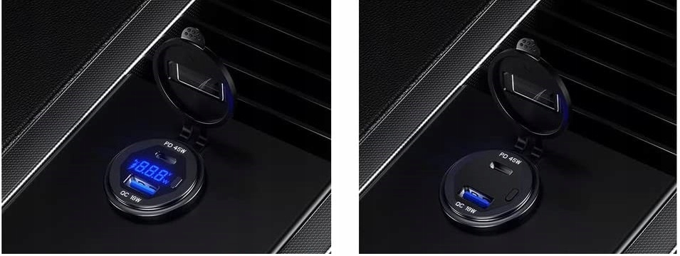 Зарядное устройство с цифровым вольтметром, отображающим текущий уровень напряжения аккумулятора, и с двумя USB-портами: быстрая зарядка QC3.0 и PD USB C. Комплект позволяет одновременно использовать обе розетки, т.е. заряжать, например, выключениеустройства.