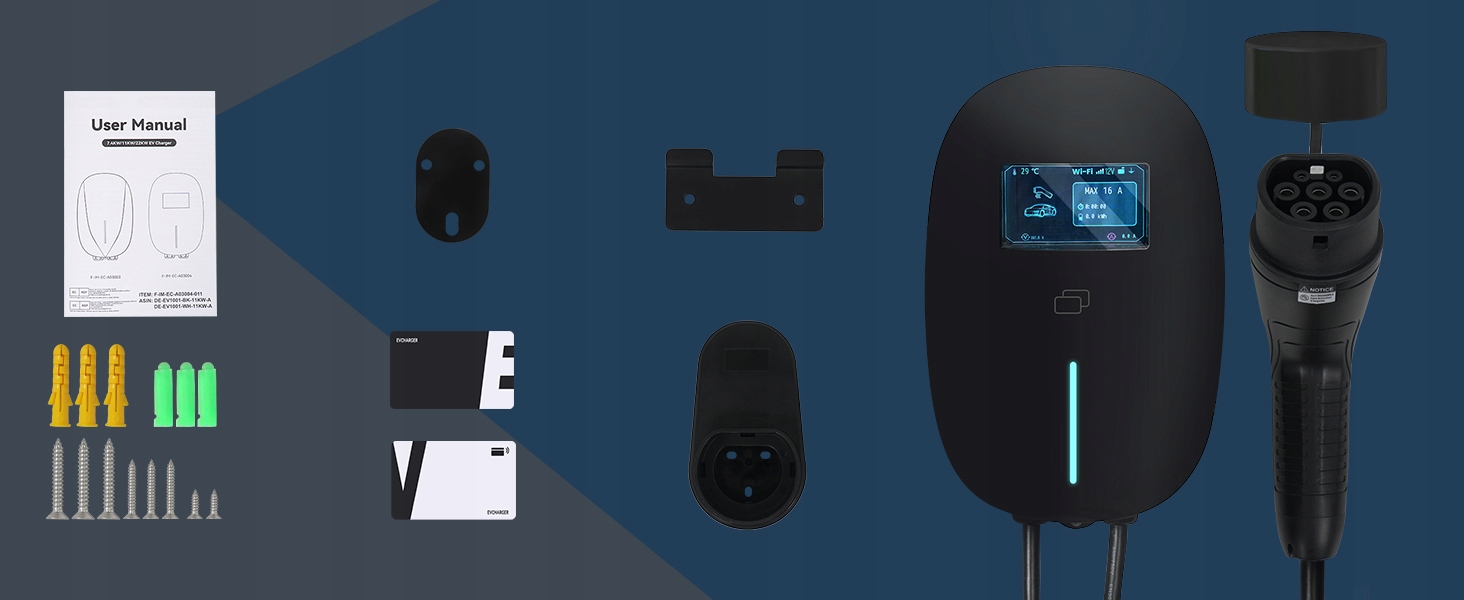Настенная зарядная станция имеет размеры 30 x 20 x 8,3 см и стильный черный дизайн, который производит впечатление. Благодаря степени защиты IP65 станции управления и IP54 ручки зарядки он надежно работает даже под дождем и пылью. 7-метровый зарядный кабель типа 2 позволяет легко подключиться к вашему автомобилю, а трехцветный светодиод четко показывает состояние зарядки, что делает его идеальным для использования в гаражах, навесах для автомобилей и на рабочих площадках.