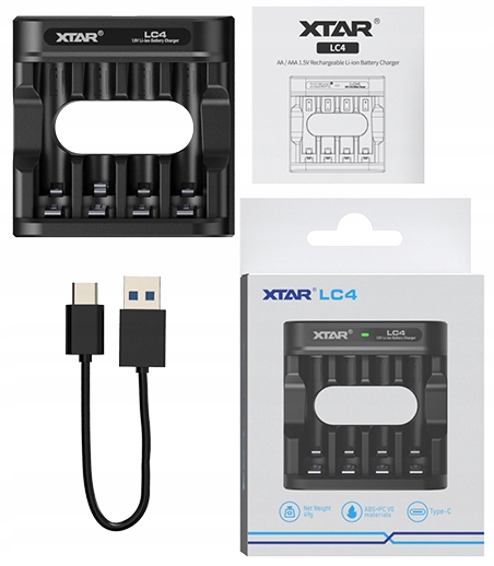Зарядное устройство XTAR LC4 AA/AAA для литий-ионных аккумуляторов 1,5 В, 4 канала USB-C