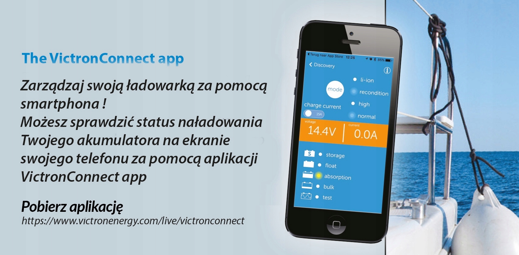Интеллектуальные зарядные устройства Blue Smart Charger IP65 от Victron Energy — это профессиональные устройства со встроенным Bluetooth. Благодаря этому вы можете прочитать информацию о работе зарядных устройств с помощью приложения VictronConnect на смартфоне, планшете или компьютере.