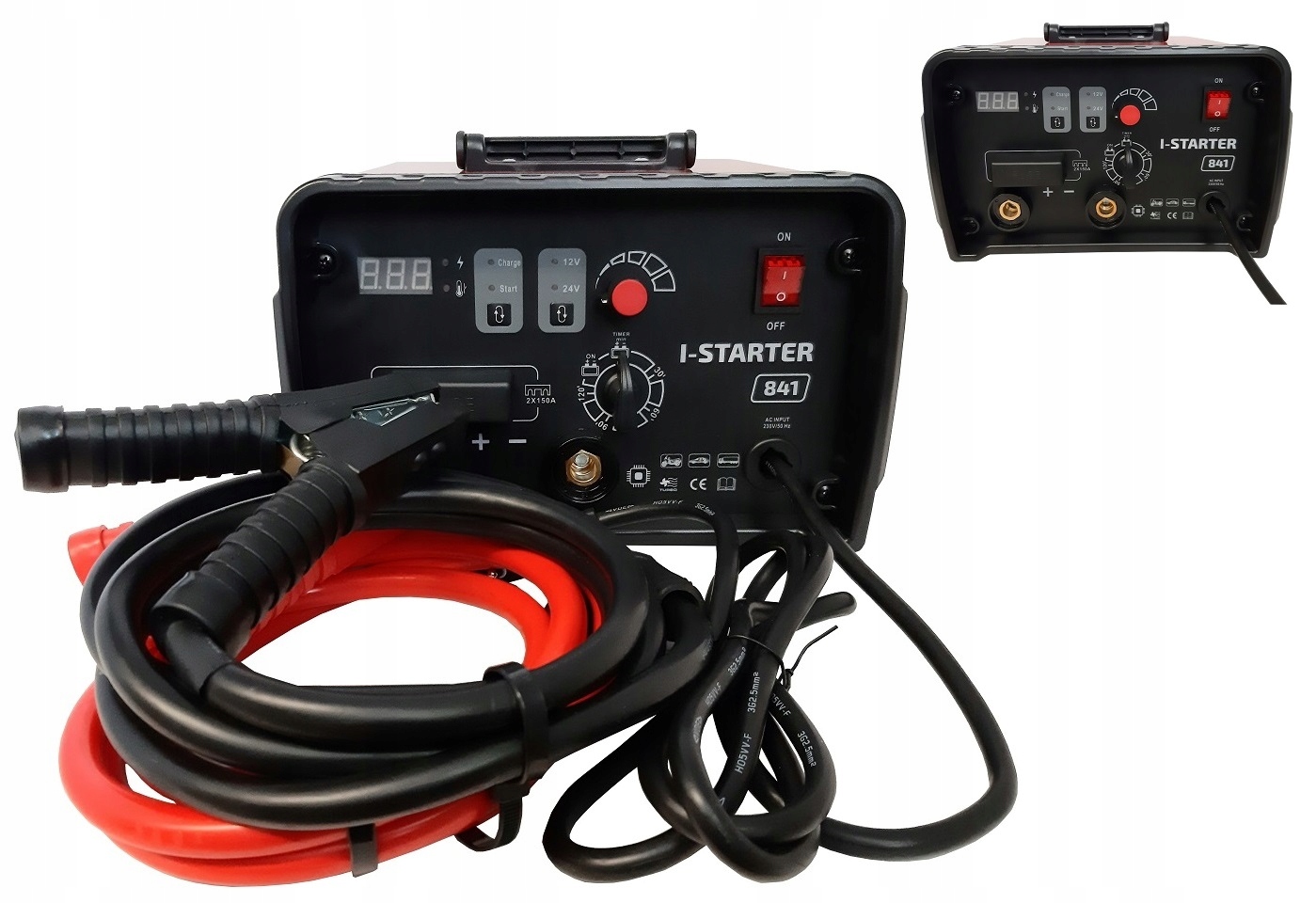 I-STARTER 841 — инверторное зарядное устройство для зарядки свинцово-кислотных аккумуляторов напряжением 12 и 24 В с функцией запуска для автомобилей с бензиновыми и дизельными двигателями (в том числе фургонов, легких грузовиков и тракторов).