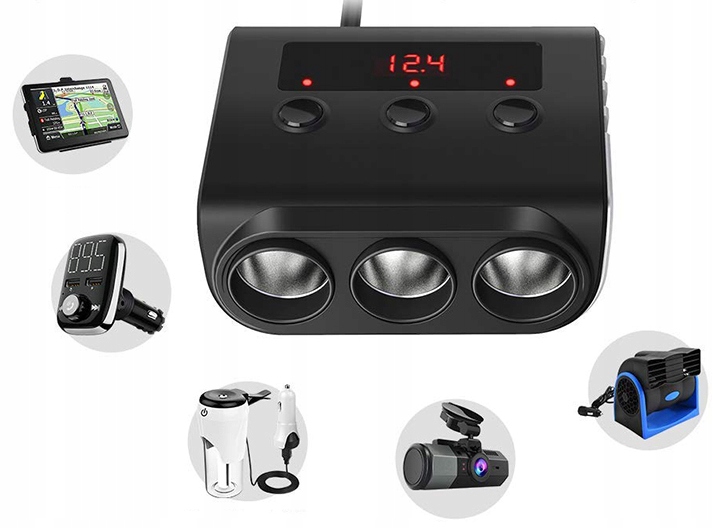 Разветвитель питания прикуривателя автомобиля 12/24В с 4 портами USB. Устройство позволяет подключить к автомобилю, оснащенному только одним прикуривателем, 3 устройства с питанием от гнезда прикуривателя. Кроме того, сплиттер избавляет от необходимости использовать USB-зарядные устройства — он имеет целых 4 встроенных порта, благодаря которым можно заряжать телефон, навигацию, павербанк и т. д.