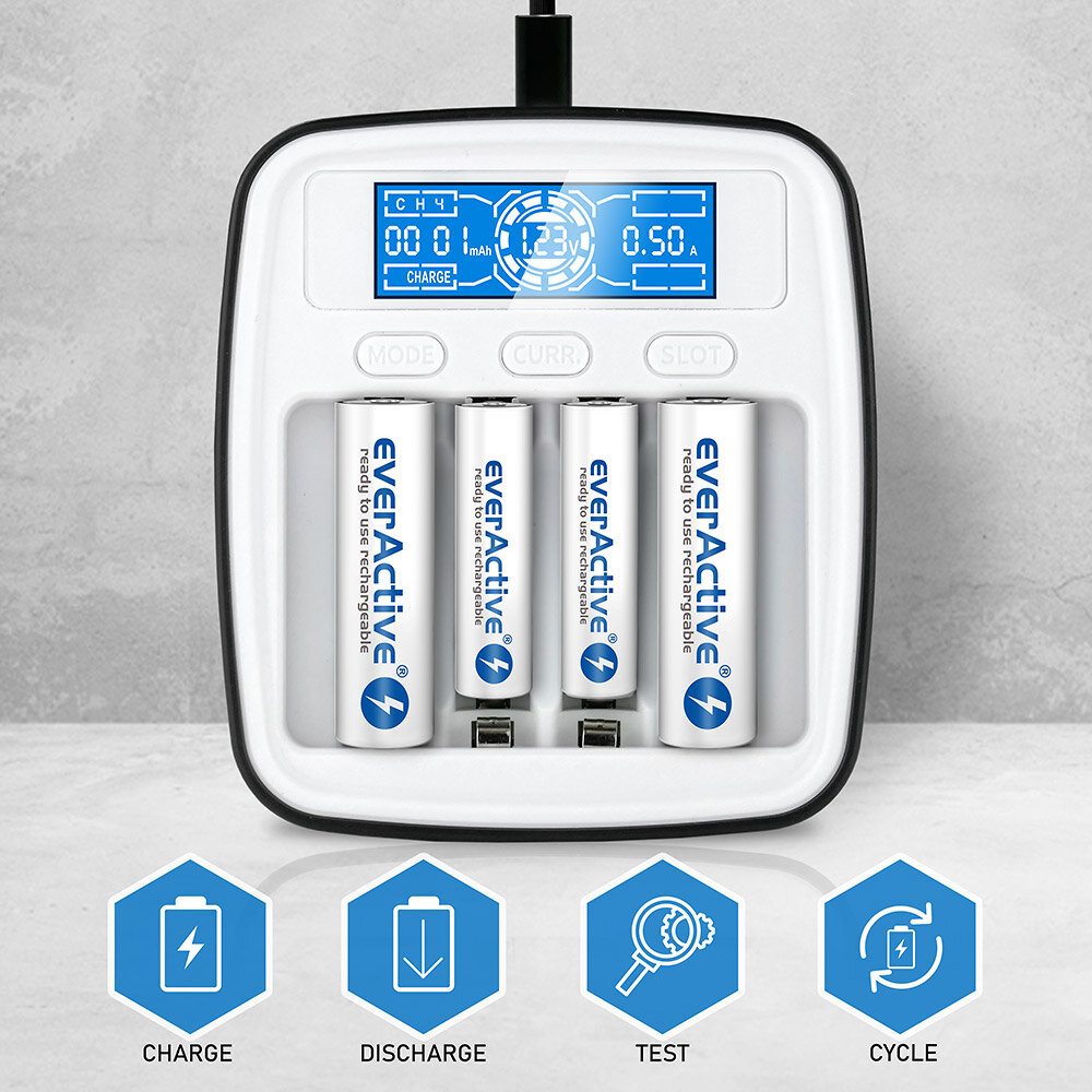 - четыре, полностью независимые каналы зарядки - вариант зарядки 1-4 шт. разные аккумуляторы, разные производители, разная емкость, разные размеры,